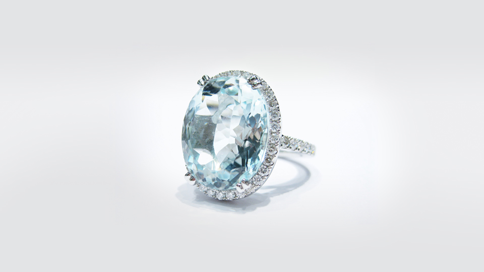 Aquamarine 6.45ct . Diamonds 1.20ct . Purity VVS2, Color E. Platinum