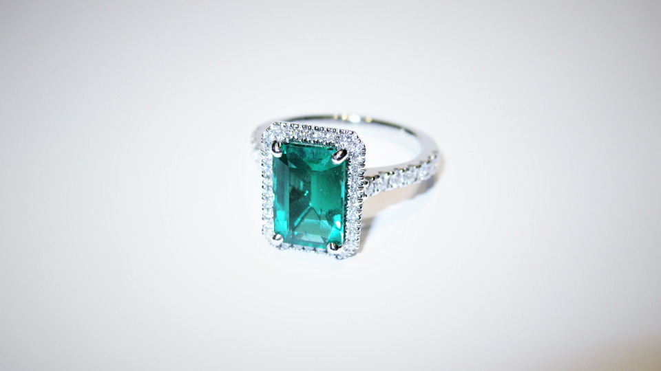 Zambian emerald 4.20ct. Diamond 3.60ct . Purity VVS2, Color E. Platinum